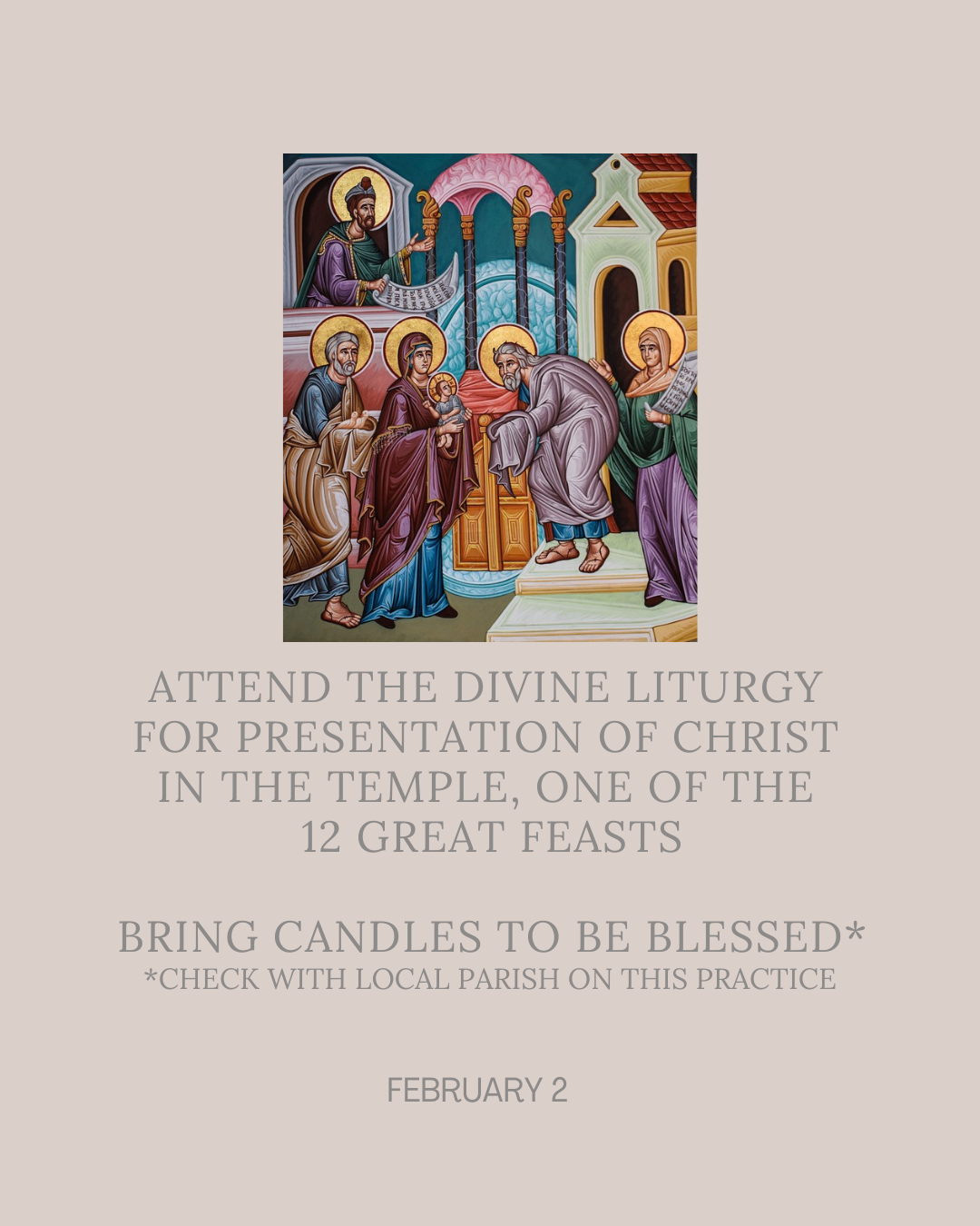 February My Synaxarion: A Saint for Everyday - by Potamitis Press features the Presentation of Christ on February 2nd. We can’t stop singing the praises of this little series of books, and I appreciate that it also highlights the major feasts too! Grab your copy here.