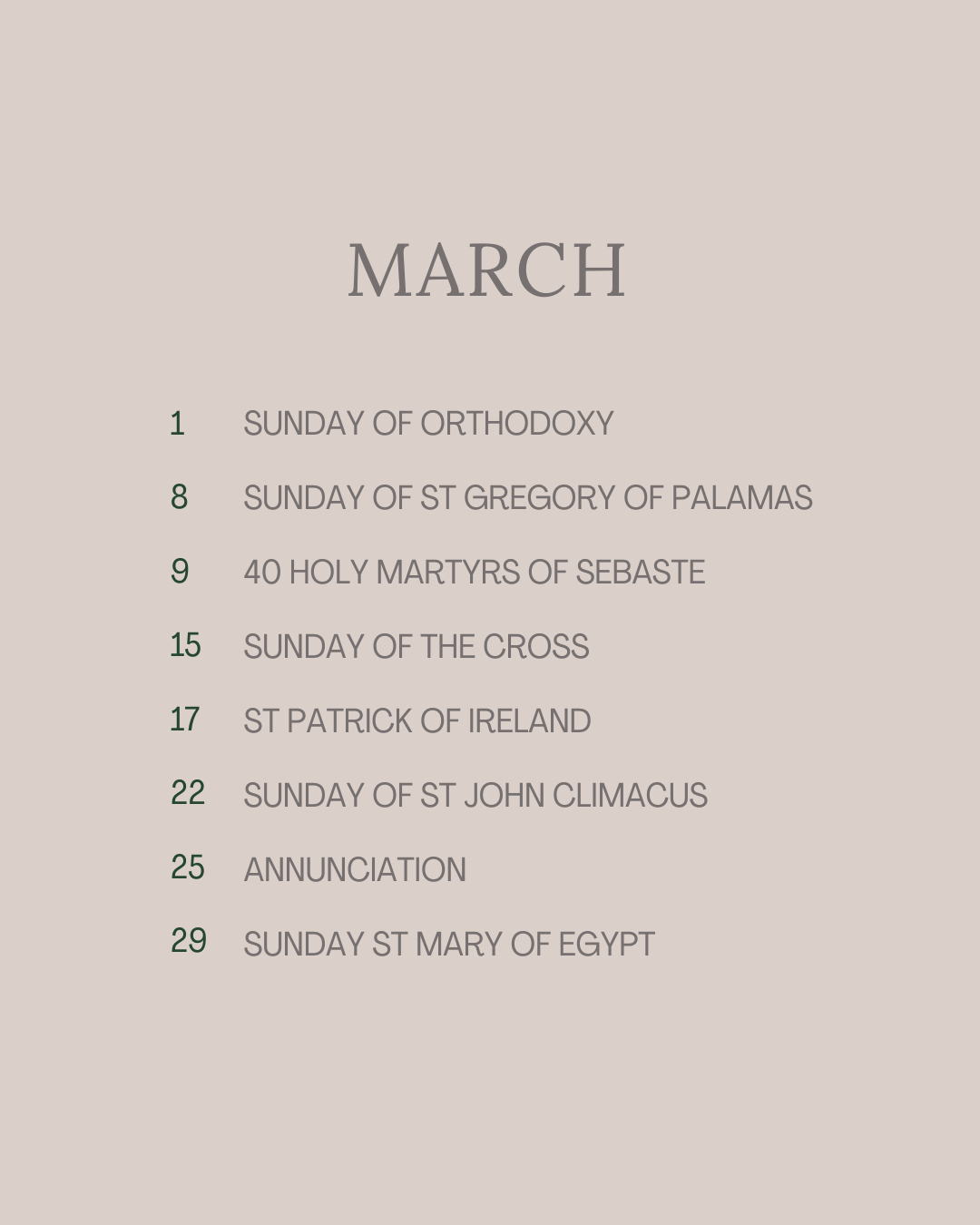 Orthodox Feast Days in March