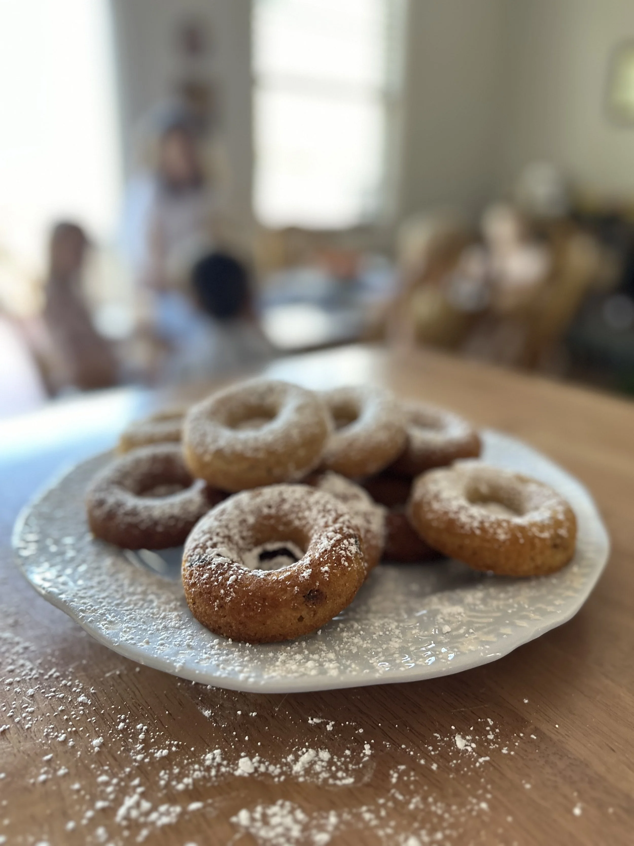 I first learned about this tradition from my friend Kh Alexis El Massih while we were living in New York. She is a dear friend of mine, a fellow priest-wife, sister in Christ, and amazing photographer! My oldest daughter and I (just a toddler at the time) showed up to her house for a usual playdate/mommy-hang-out and the entire house smelled absolutely scrumptious with this warm citrusy smell. She set out homemade donuts on a pretty wooden cake stand on her kitchen island and had iced coffee ready for us to enjoy. I was struck with how adorable these donuts looked all covered in yummy powered sugar and inquired more about them. She said "Oh this is my St. Phanourios cake I was telling you about! I just made it in donut form!" I'm pretty sure my response was something dramatic like, “I’m sorry what did you say?” We still laugh at my inability to hear Greek words and understand them. She repeated herself “Phanouropita! The cake you make when St Phanourios helps you find an item that was lost!”